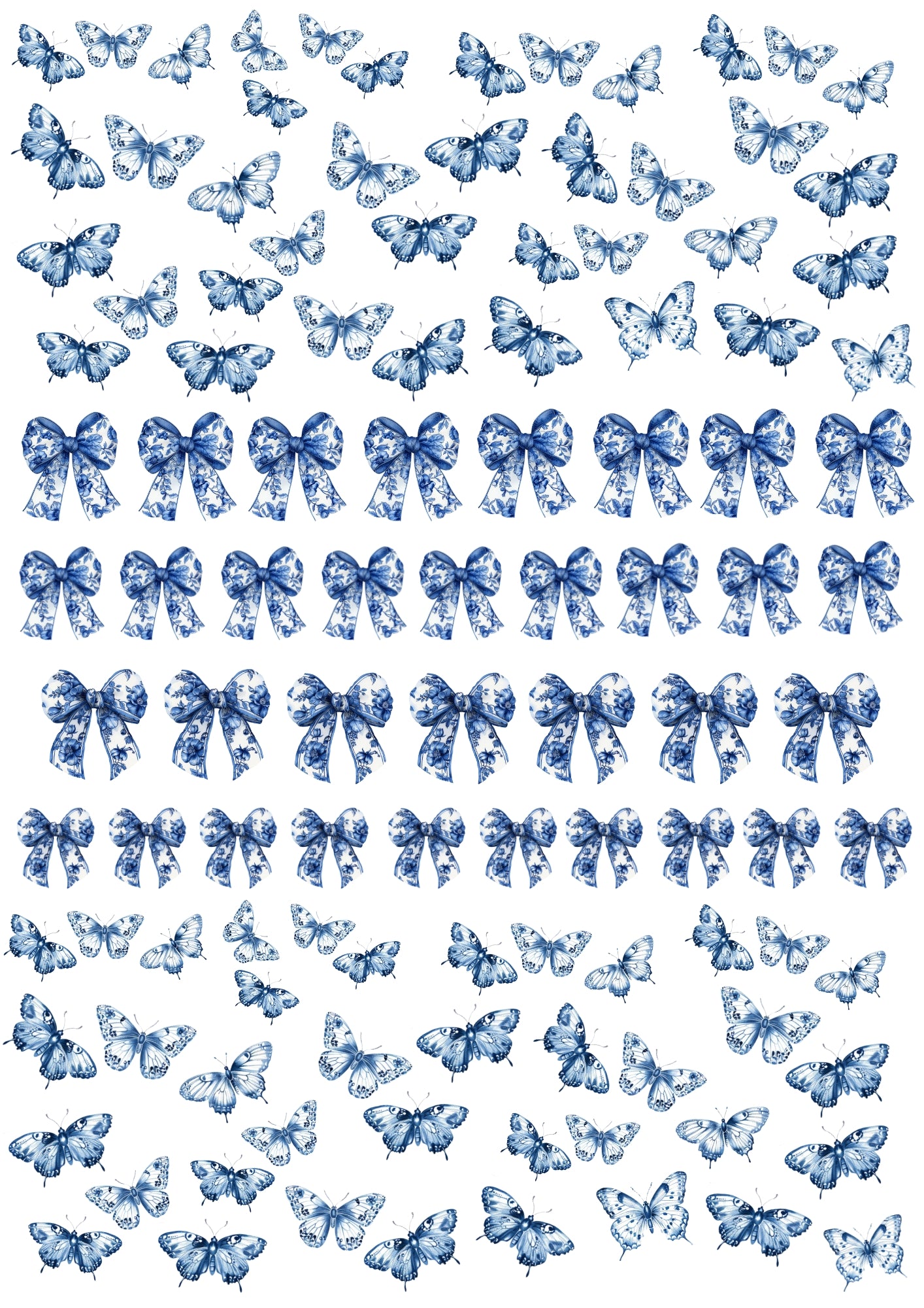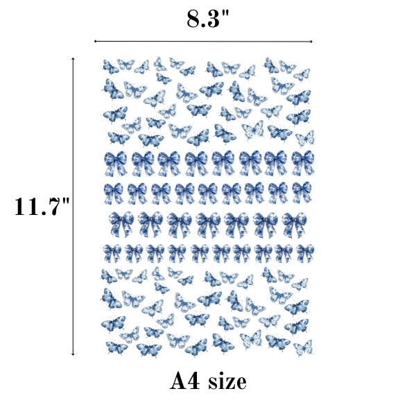 A4 Easter Bows & Butterflies Candle Tattoo Stickers — Blue Chinoiserie Design .Bring a soft, elegant Easter touch to your candles and gypsum décor with this A4 sheet of Blue Chinoiserie Bows & Butterflies Candle Tattoo Stickers. Designed with delicate hand-drawn butterflies and ornate floral bows, this sheet is perfect for creating charming spring candles, Easter collections, and gift-ready décor pieces.These water-transfer decals are easy to apply and deliver a smooth, professional finish — ideal for candle makers, DIY creators, and anyone who loves refined seasonal designs.And as always, these stickers are perfect for candles and gypsum art.
